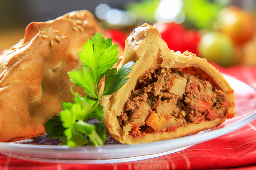 Cornish Pasties heißen die kleinen gefüllten Pasteten, die üblicherweise ohne Besteck gegessen werden. Die halbmondförmigen Teigtaschen waren ein beliebtes englisches Essen für die Lunchbox der Minenarbeiter in Cornwall. Hinein kam, was an Fleisch und Gemüse in der Küche vorhanden war. In Bäckereien und Cafés erhaltet ihr den rustikalen Klassiker auch mit süßen und vegetarischen Füllungen. Perfekt als Reiseproviant!
