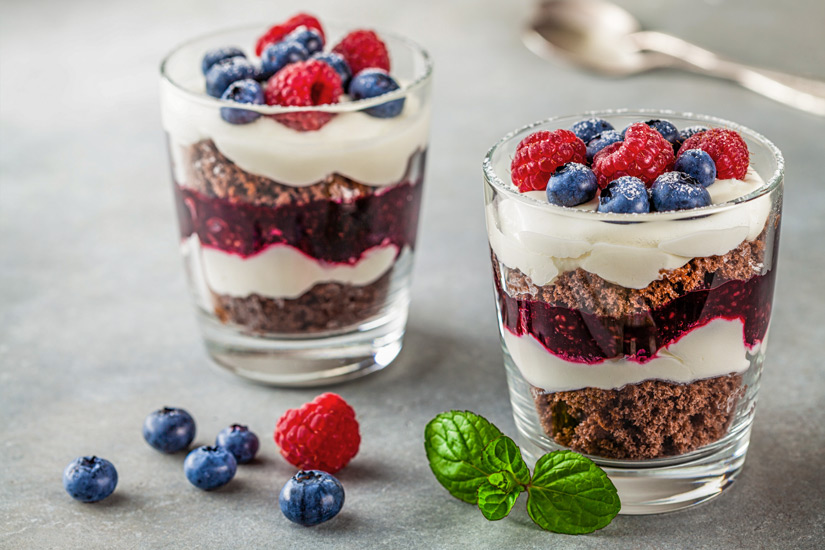 Das Geniale am Trifle ist das Schichtsystem aus Kuchen, Creme und Früchten. Je nachdem welche Zutaten gerade zur Hand sind, wird er in der englischen Küche kreativ variiert. Klassisch kommt Biskuit in ein Glas und wird schichtweise mit frischen Früchten der Saison und cremiger Sahne, Mascarpone oder einer Puddingcreme bedeckt. Wenn es schnell gehen soll, lässt sich der Trifle auch mit Shortbread oder Cantuccini zubereiten. Damit das Gebäck sich angenehm mit dem Löffel verspeisen lässt, wird es großzügig mit Whiskey oder Likör beträufelt. So tasty!