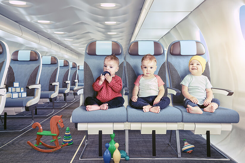 Wenn das Kind bereits älter als fünf Jahre ist, wird es teuer. Dann verlangen nämlich gut zwei Drittel der Billigflieger den Erwachsenenpreis – beim restlichen Drittel werden immerhin 80 % veranschlagt. Für Familien geht die einzelne Buchung der Tickets daher enorm an den Geldbeutel. Wer sich finanziell nicht gänzlich verausgaben möchte, greift auf die Familientarife u.a. mit niedrigeren Ticketpreisen, Rabatten auf Aufgabe- und Handgepäck sowie kostenlose Sitzplätze für die Kinder zurück. Meist sind dann auch einige sperrige Zubehörteile wie Kinderwagen im Preis inbegriffen. Diese müssen jedoch zwingend beim Check-in abgegeben werden und kommen in den Frachtraum.