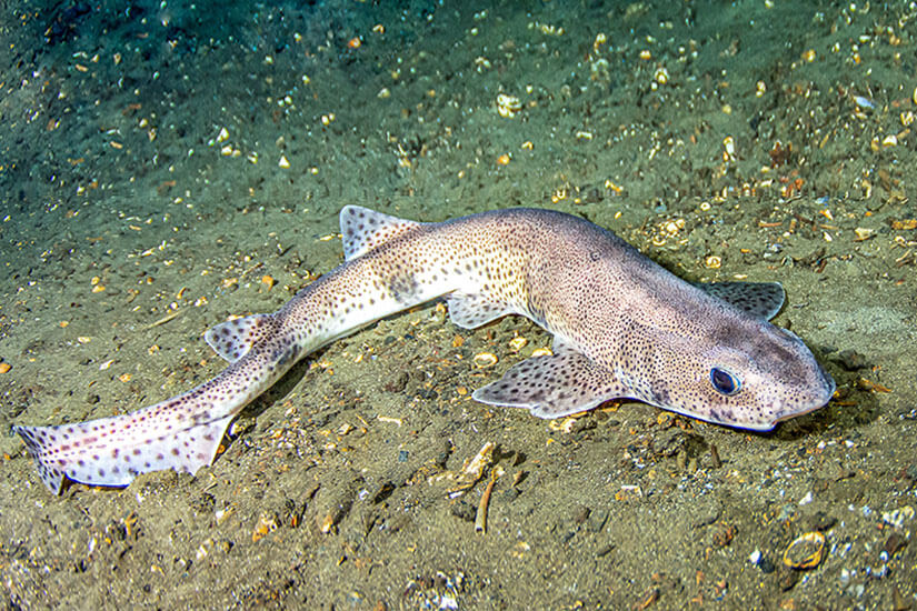 Dieser Hai lebt im Mittelmeer, an der Westküste Nordafrikas und eben auch in der Nordsee. Die niedlichen Katzenaugen und seine kleinen Flecken verliehen ihm seinen wohlklingenden Namen. Der Fisch wird maximal bis zu 100 Zentimeter lang. Eine Gefahr für den Menschen besteht nicht. Denn Kleingefleckte Katzenhaie sind extrem scheu und trauen sich nur in den seltensten Fällen in die Nähe von Schwimmern, Tauchern oder Surfern.