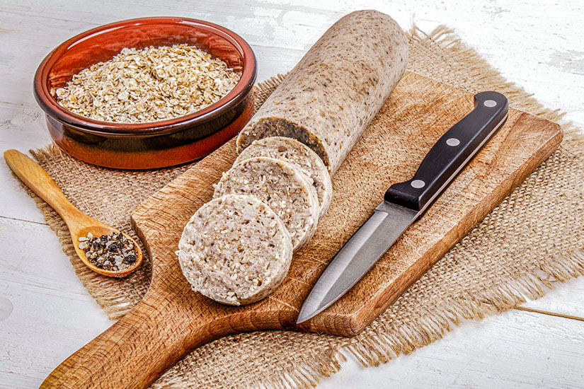Bei Black Pudding handelt es sich um einen „false friend“, denn das Gericht bezeichnet keinen süßen Nachtisch, sondern ein deftiges Fleischprodukt. Die traditionelle Blutwurst aus Schweineblut und Fett mit Hafer oder Gerste ist fester Bestandteil des irischen Frühstücks und kommt auch als Beilage oder Snack für zwischendurch auf den Tisch. Damals wie heute ist Black Pudding bei den Iren beliebt.