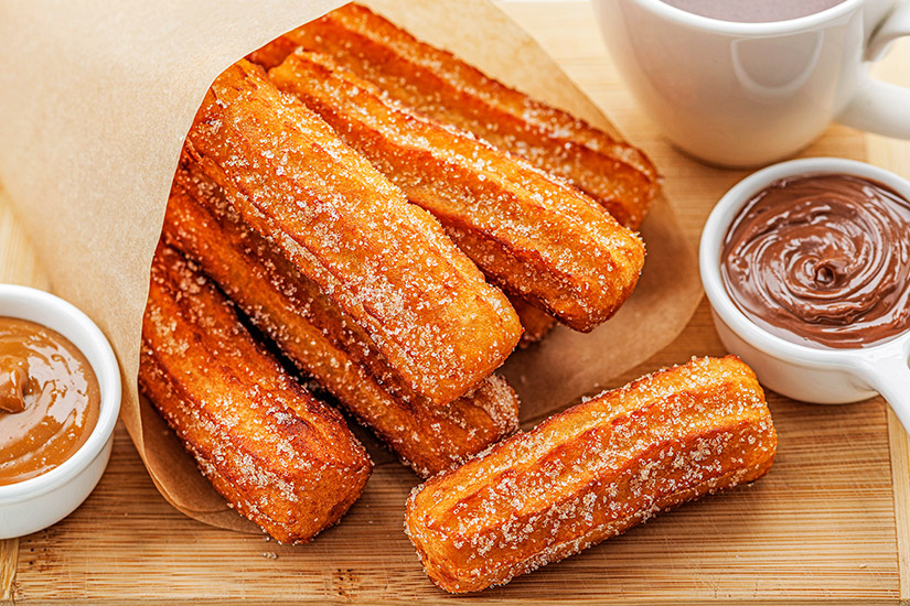 Nach dem Zuckerschock darf es noch etwas Fettiges sein? Dann ab zu den Street-Food-Ständen, die ihren Duft nach Churros verströmen! Die frittierte Teigspeise gibt es mit Schokoladensoße oder Zucker. Sie stammt, wie die Paella, ursprünglich aus der spanischen Küche.