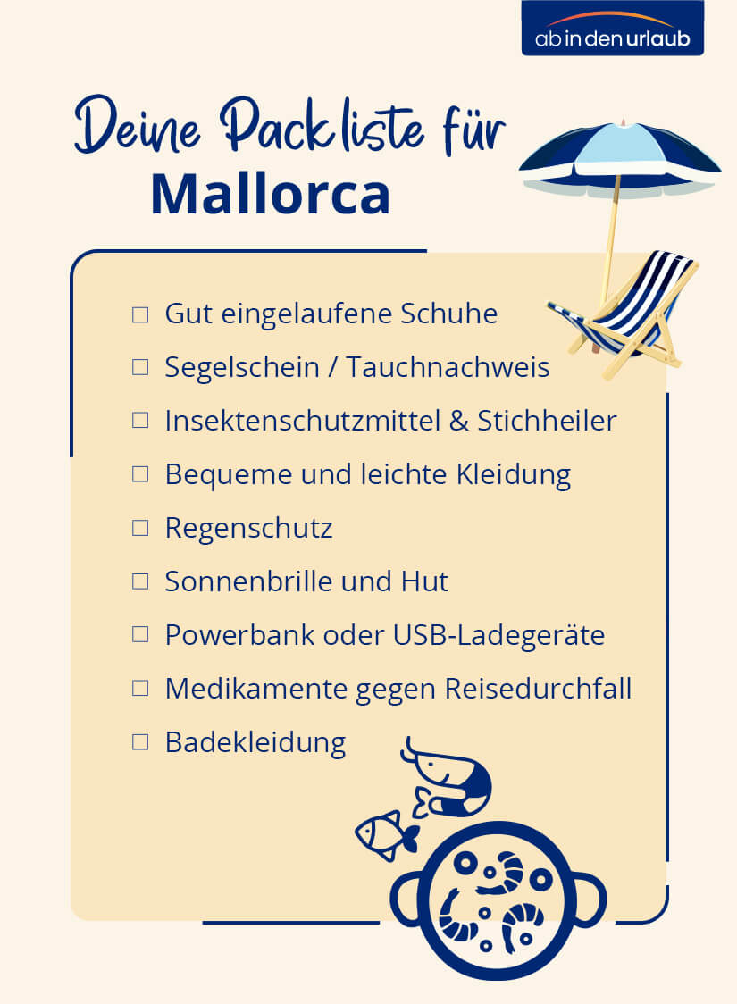 Mallorca ist eines der liebsten Urlaubsziele der Deutschen – und für viele fast so etwas wie eine zweite Heimat geworden. Trotzdem wollen Koffer und Handgepäck immer wieder aufs Neue strukturiert gepackt werden. Unsere praktischen Tipps inklusive einer ausführlichen Checkliste rüsten euch für alle Eventualitäten.