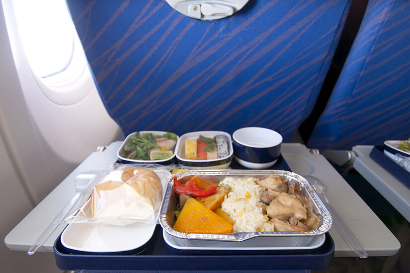 Um die Heftigkeit von Blähungen im Flugzeug zu verringern, könnt ihr vor und beim Flug auf euer Essen achten. Von diversen Kohlsorten, Hülsenfrüchten wie Erbsen und Bohnen, Zwiebeln, Bananen und Dörrobst lasst ihr besser die Finger. Weil auch Luftfahrtunternehmen um diesen Umstand wissen, tauchen diese Nahrungsmittel häufig gar nicht Essen an Bord des Flugzeugs auf. Gut verdaulich sind unter anderem gedünstete Möhren oder Zucchini. Wer langsam und gründlich kaut, tut sich etwas Gutes. Scharf gewürzte Speisen reizen den Darm.