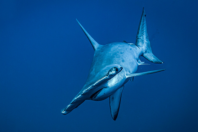 Leicht zu erkennen ist der Hammerhai, was an dem Cephalofoil liegt. So wird in der Biologie der hammerähnliche Kopf genannt. Von den insgesamt acht Arten ist der Große Hammerhai mit bis zu 6 m Länge der größte von ihnen. Wegen der weit auseinander liegenden Augen haben Hammerhaie eine gute Rundumsicht und Tiefenwahrnehmung. Man muss weit auf das Rote Meer hinaus, um die Haie zu sichten. Am Daedalus-Riff in circa 100 km Entfernung zu Marsa Alam, könnt ihr ihnen begegnen. Die größeren Hammerhaiarten gelten als potenziell gefährlich, aber bei ihnen sind nur wenige Angriffe bekannt. Ihr Bestand unterliegt einer Gefährdung.
