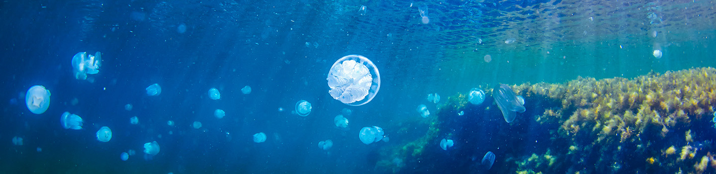 Quallen sind häufig in großen Schwärmen unterwegs und je nach Wind und Witterung mal näher am Ufer und mal weiter draußen auf dem Meer. Sind schon vom Strand aus viele Quallen zu sehen, sollte man das Schwimmen oder Tauchen lieber verschieben. Nähert euch im Wasser plötzlich eine Gruppe Quallen, bleibt ruhig und bewegt euch nicht zu hastig Richtung Ufer. Zu schnelle Schwimmzüge erzeugen einen Sog, der die Tiere heranzieht. Bei der „Flucht“ sollten vor allem die Augen vor dem Kontakt mit den Tentakeln der Tiere geschützt werden. Ist ein rasches Herauskommen aus dem Wasser nicht möglich, zum Beispiel bei einer Tauchtour auf dem offenen Meer, versucht ruhig zu bleiben und nicht in Panik zu geraten. Mit Ruhe und umsichtigen Schwimmzügen werdet ihr das Boot oder den Steg sicher erreichen. Neoprenanzüge schützen bestens vor den Nesselzellen und sind bei Tauchgängen aus vielen Gründen anzuraten.