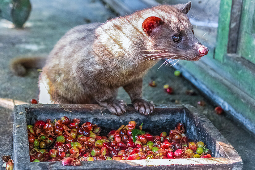 Bali ist bekannt für seinen hochwertigen und außergewöhnlichen Kaffee. Der wohl teuerste Kaffee der Welt muss während des Herstellungsprozesses teilweise von einer Schleichkatze (Fleckenmusang) gegessen und wieder ausgeschieden werden. Was im ersten Moment abstoßend klingt, hat eine Kaffeespezialität zur Folge, die Genießer wohl beeindrucken wird. Es handelt sich um die Sorte „Kopi Luwak‟. Hierbei solltet ihr jedoch unbedingt aufpassen, dass der Kaffee nicht mit Tieren in karger Käfighaltung produziert wird.