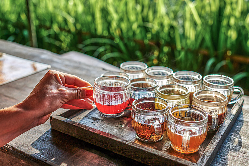 Kommen wir zu einer Alternative für alle, die traditionelle Getränke auf Bali lieben, aber sich mit dem Kaffee nicht ganz anfreunden können. Es ist der Tee, der auf der Insel zum guten Ton gehört. Hauptsächlich werdet ihr auf Ingwertee stoßen, dem eine wärmende und belebende Wirkung zugesprochen wird. Zudem soll er sich positiv auf Verdauungsprobleme auswirken und das Immunsystem stärken. Auf Bali ist der Ingwertee vergleichsweise süß und wird gerne als Erfrischungsgetränk oder vor und nach dem Yoga getrunken. Ihr könnt ihn in einer verschließbaren Dose in Pulverform kaufen und sicher transportieren.