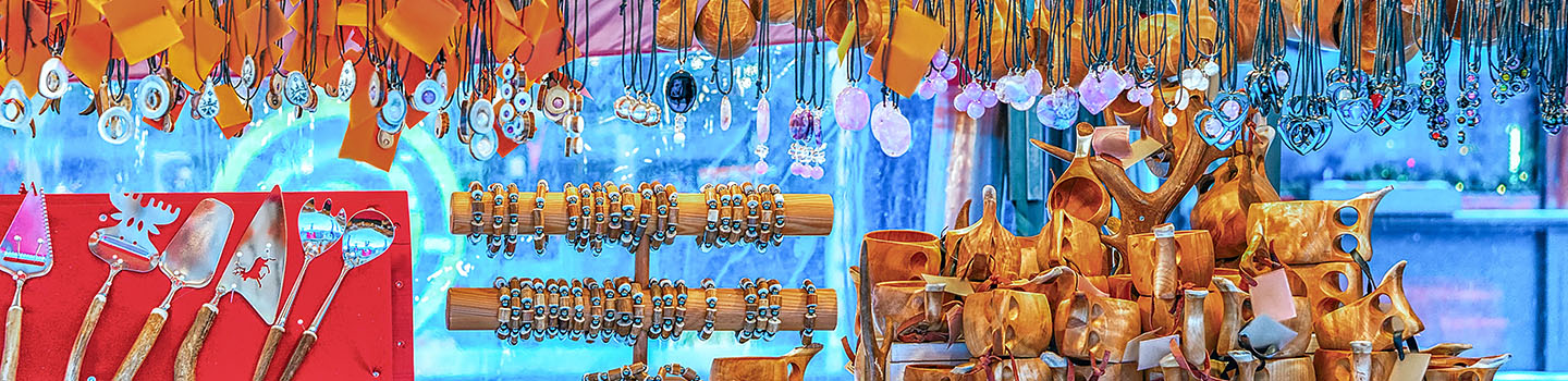 Abseits von Rovaniemi bekommt ihr zumindest in der Wintersaison auf den vielen Märkten von Helsinki stimmungsvolle Dekorationsgegenstände für die schönste Zeit im Jahr. Baumkugeln, künstliche Miniatur-Bäumchen oder geschnitzte und teilweise beleuchtete Häuser aus Holz sind nur drei Beispiele für ein exklusives, festliches Andenken direkt aus dem Heimatland des Weihnachtsmanns.
