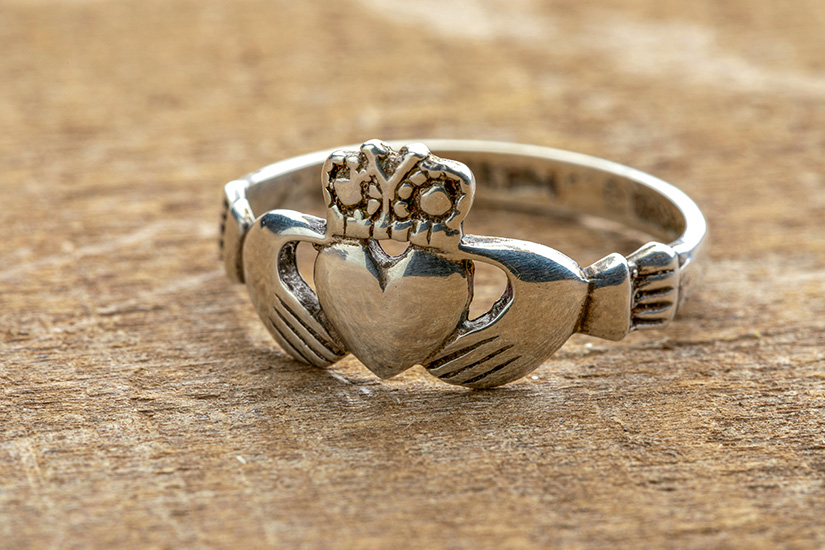 Ein ganz besonderes Schmuckstück ist der sogenannte Claddagh Ring. Dieser traditionelle irische Ring, der seit Jahrhunderten als Symbol für Freundschaft, Liebe und Loyalität verwendet wird, ist nach dem Fischerdorf Claddagh in Galway benannt, wo er erstmals hergestellt wurde. Er besteht aus drei Hauptelementen: einer Krone, zwei Händen und einem Herzen. Die Krone symbolisiert Loyalität, die Hände Freundschaft und das Herz die Liebe.