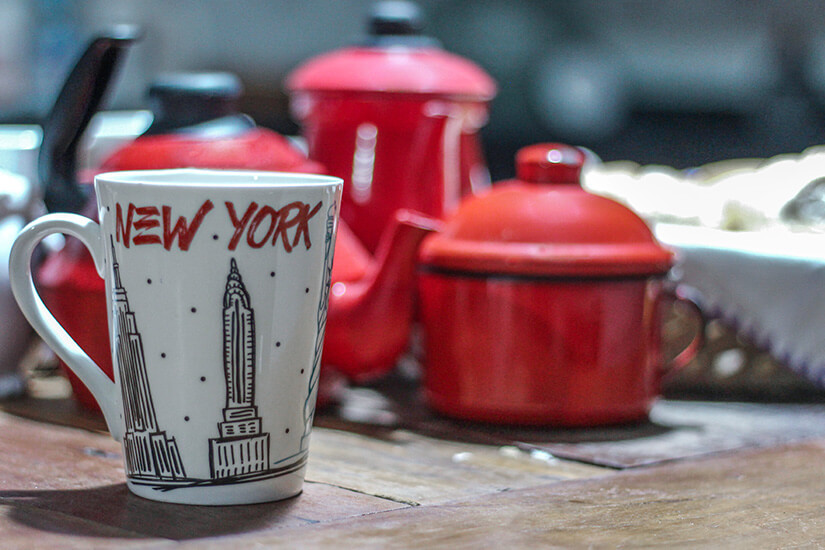 Der Klassiker: Eine weiße Tasse mit rotem Herz und der Aufschrift „I Love NY“. Sie erinnert euch jeden Morgen beim Frühstück an eure Amerikareise. Darüber hinaus gibt es Tassen, die nur mit dem Stadtnamen oder der weltberühmten Skyline versehen sind. Sehr schön sind Modelle, die New Yorker Sehenswürdigkeiten, wie die Freiheitsstatue oder das Empire State Building abbilden. Für Fans von amerikanischen Filmen und Serien findet sich ebenfalls eine große Auswahl. Eine Abbildung der Kultserie „Sex and the City“, die die Geschichte von Frauen aus New York erzählt, oder der Sitcom „King of Queens” sowie „Friends“? Dann werdet ihr beim Anblick der entsprechenden Motivtasse strahlen.