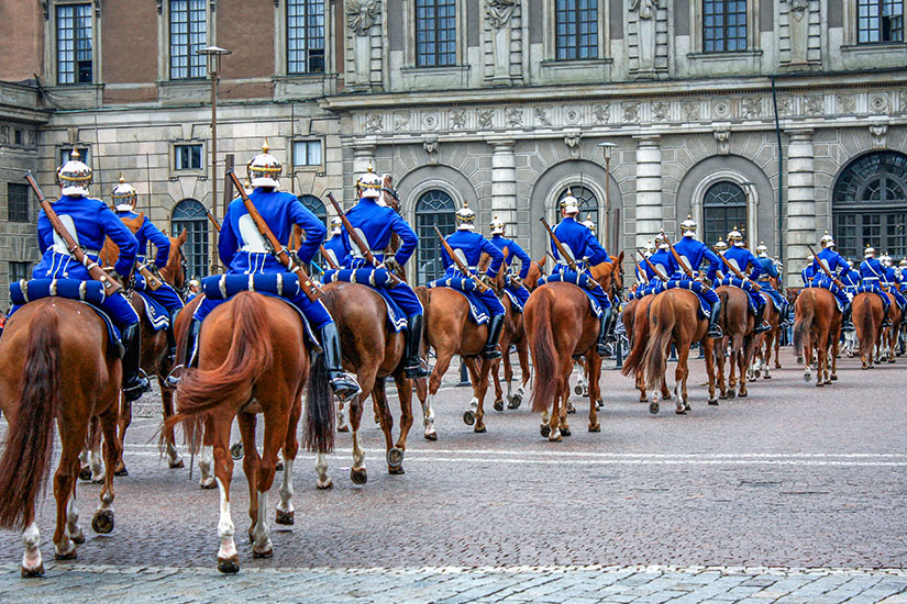 Bei gutem Wetter macht es Spaß, an einer der speziellen Stockholmer Zeremonien im Freien teilzunehmen, die sich täglich wiederholt. Es ist die Wachablösung auf dem Schlossgelände. An jedem Tag um 11:45 Uhr ist es so weit. Im Rahmen einer Parade, begleitet von Musik, wird das Event südlich des Gebäudes zelebriert.
