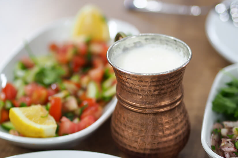 Ein weiteres typisch türkisches Getränk ist der Ayran, ein mit Wasser verdünnter und salziger Joghurt, der besonders im Sommer mit Minze und Eiswürfeln als erfrischender Drink gilt. Als inoffizielles Nationalgetränk der Türken gilt Rakı, ein hochprozentiger Anisschnaps. Dieser wird mit kaltem Wasser verdünnt. So könnt ihr mit einem würzigen Rakı auf einen gelungenen Türkeiurlaub anstoßen.