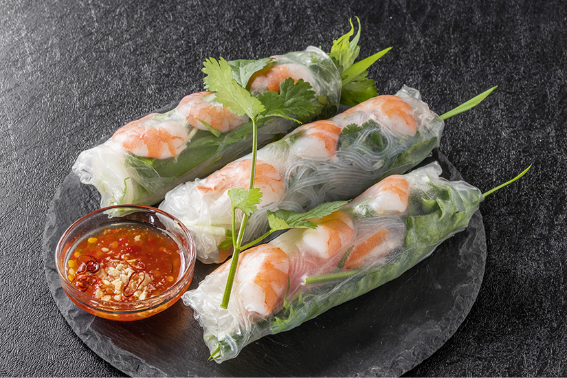 Frühlingsrollen in Vietnam werden oft auch als “Sommerrollen” bezeichnet. Das hat den einfachen Grund, dass ihre Zubereitungsart für ein eher leichtes Gericht sorgt. Panierte oder frittierte Frühlingsrollen sind seltener. Die Goi Cuon Tom Thit werden hingegen aus Reispapier gefertigt. Dieses ist fast durchsichtig, wird für die Zubereitung in Wasser getaucht, bis es weich ist, und erhält anschließend eine beliebige Füllung. Gemüse, Gewürze, Kräuter oder Garnelen, manchmal auch Fleisch, sorgen für ein stimmiges Geschmackserlebnis. Zum Dippen gibt es eine Chilisauce oder auch Erdnusssauce. Wenn ihr mögt, könnt ihr eure Goi Cuon Tom Thit auch selbst rollen, sofern das Restaurant diesen “Bausatz” anbietet. Traditionell wird immer Reispapier als Basis für die Sommerrollen genommen. Doch gibt es mittlerweile auch Varianten aus Weizenmehl.