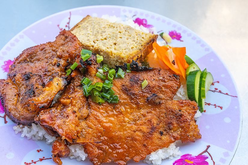 Com Thit Kho Tieu ist Com Tam ähnlich und besteht aus Reis sowie Schweinefleisch. Das Fleisch wird in einer pfeffrigen Sauce angebraten und sehr zart serviert. Lasst es euch auf der Zunge zergehen! Der Unterschied zu Com Tam ist, dass der hier verwendete Reis nicht gebrochen wird.