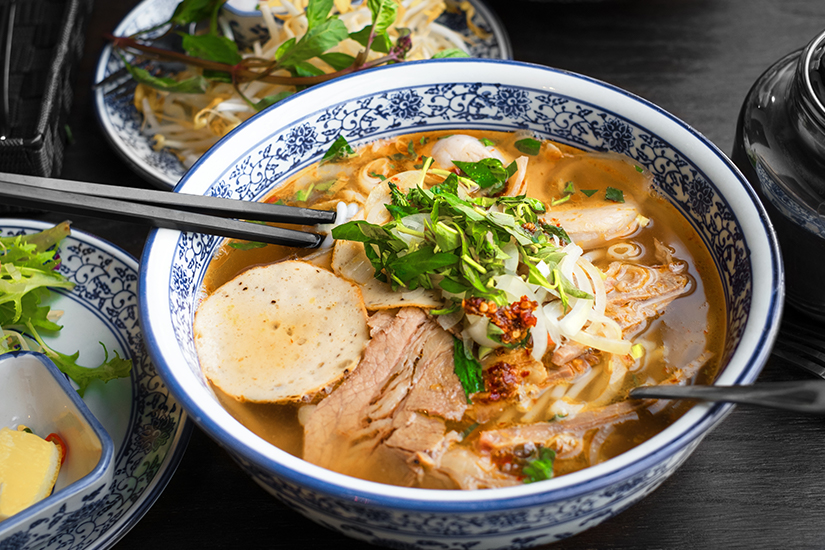 Das Nationalgericht in Vietnam ist eine Suppe – und die wird von morgens bis abends serviert. Neben der bekanntesten Suppe Pho solltet ihr aber auch einmal Banh Canh Cua und Bun Bo Hue probieren, wenn sich dazu die Gelegenheit ergibt.