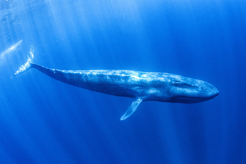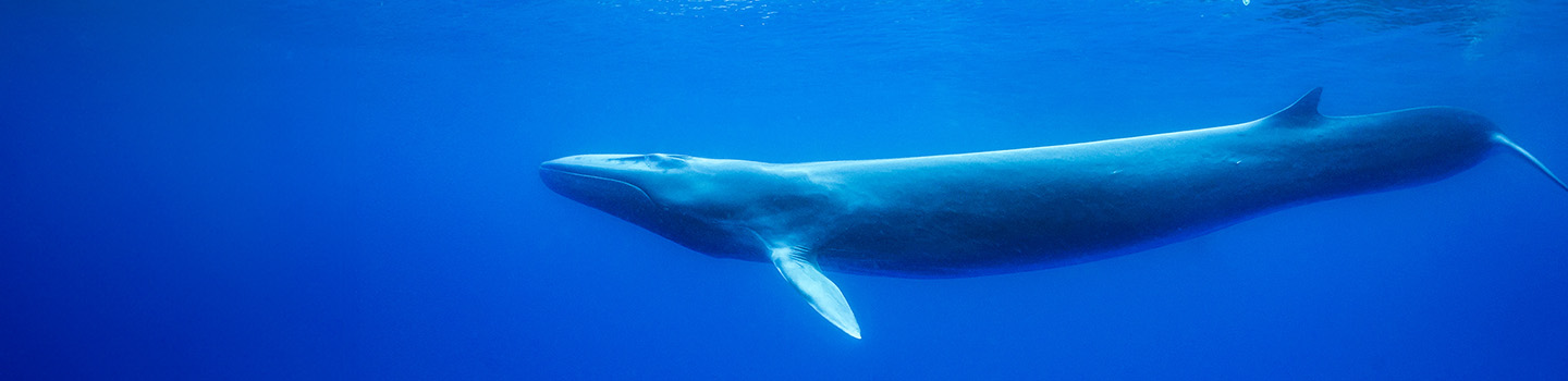 Die Blauwale sind die größten Tiere der Erde und können mehr als 30 Meter lang werden. Sie sehen beeindruckend aus, sind aber in der deutschen Nordsee nur selten zu finden. Einer von ihnen strandete im Jahr 1881 vor Rantum auf der Insel Sylt. Einzelne Blauwale wurden vor langer Zeit an der belgischen und niederländischen Küste gesehen. Im Jahr 1907 stattete ein Artgenosse Dänemark einen Besuch ab. Blauwale gehören zu der Unterordnung der Bartenwale und zur Familie der Furchenwale. Sie haben einen schlanken und stromlinienförmigen Körper, der eine dunkelblau-graue Färbung aufweist und mit hellen Flecken gesprenkelt ist. Die Bauchseite ist deutlich heller. Im Vergleich zum breiten Kopf wirkt die Schnauze sehr flach. Auch diese Großwale sind seit Mitte des 19. Jahrhunderts von der Jagd betroffen und werden als stark gefährdet eingestuft.