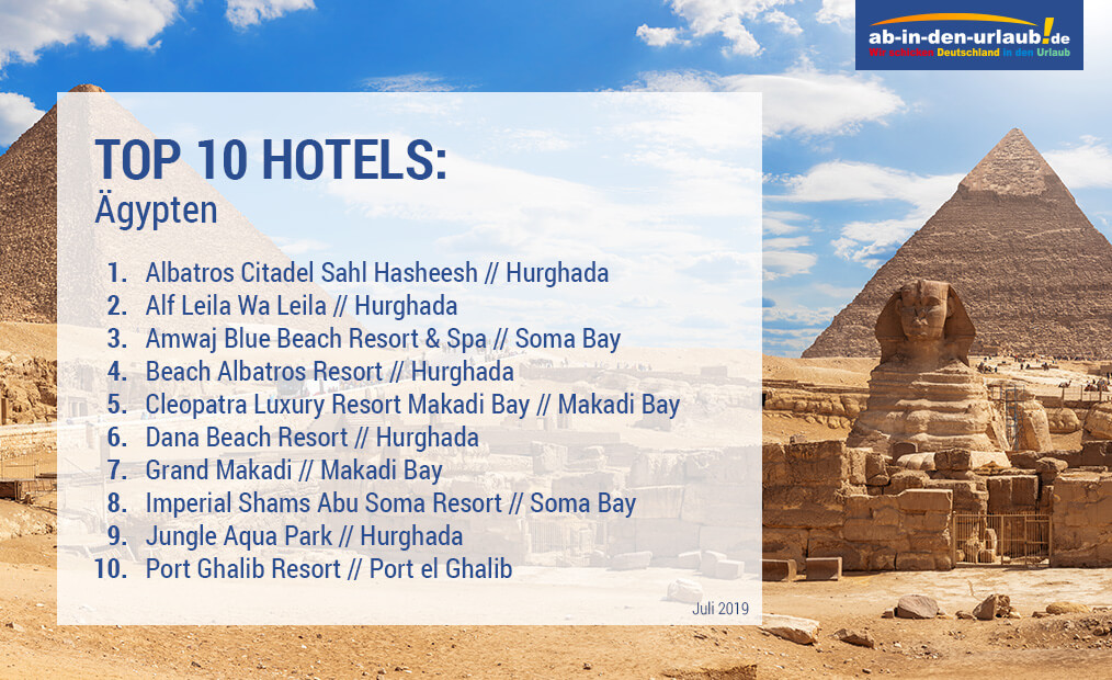 Luxuriöse Poollandschaften in einem Meer aus Wüste: Hurghada, Soma Bay, Makadi Bay und Port el Ghalib - das sind die begehrtesten Reisedestinationen unserer Kunden in Ägypten. Wir haben uns gefragt, welche Hotels am beliebtesten sind. Zeitraum: Juli 2019.